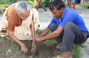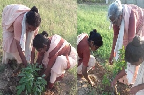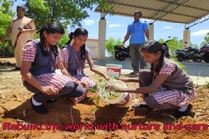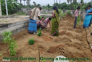 Mathur teachers & helpers lending a helping hand to set up a herbal garden
