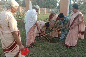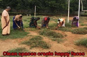Sisters at Ashirbhawan along with helpers cleaning up the campus