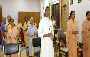 Sisters at Edappally, praying with the inmates of 'CARITAS HOME'