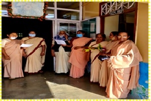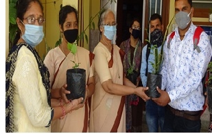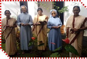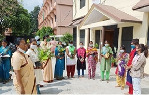 Sisters Stella & Sanjana distributing plants to the teachers & workers which are to be planted by them later
