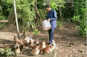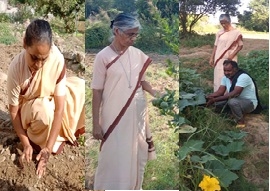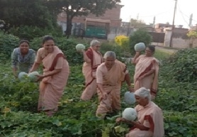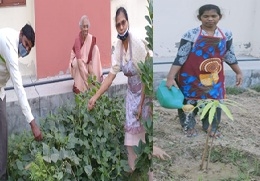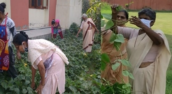 Sisters at Ashirbhawan plucking veggies & watering the plants