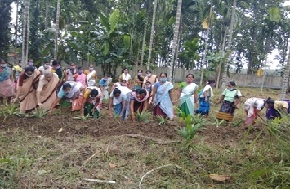 Sisters at Goalpara distributing seed for the widows to plant in the villages