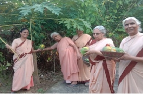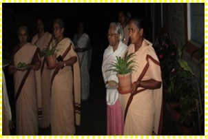 Sisters at Pattikalyana with symbols of nature, ready to offer before the Lord