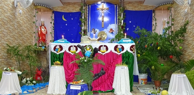 Sidhpur - Altar ready for the prayer service on the occasion of the celebration of 'Season of Creation