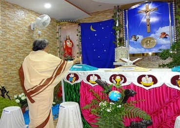 Sisters at Aya Nagar offering the fruits of the earth before the Lord