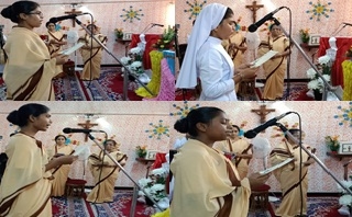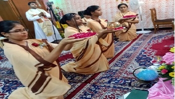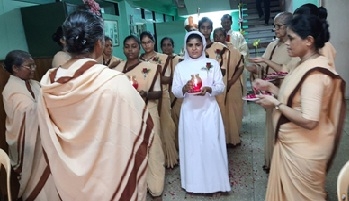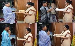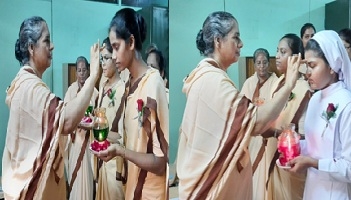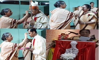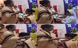 Sr. Teresa Attupuram, the Provincial handing over the uniform sari after the prayer