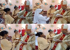 Sr. Teresa Attupuram (Provincial ) giving the Cross with chain to the Newly Professed