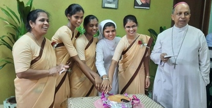 Newly Professed Sisters with Bishop Anil Couto, Parish Priest and Sr. Teresa Attupuram