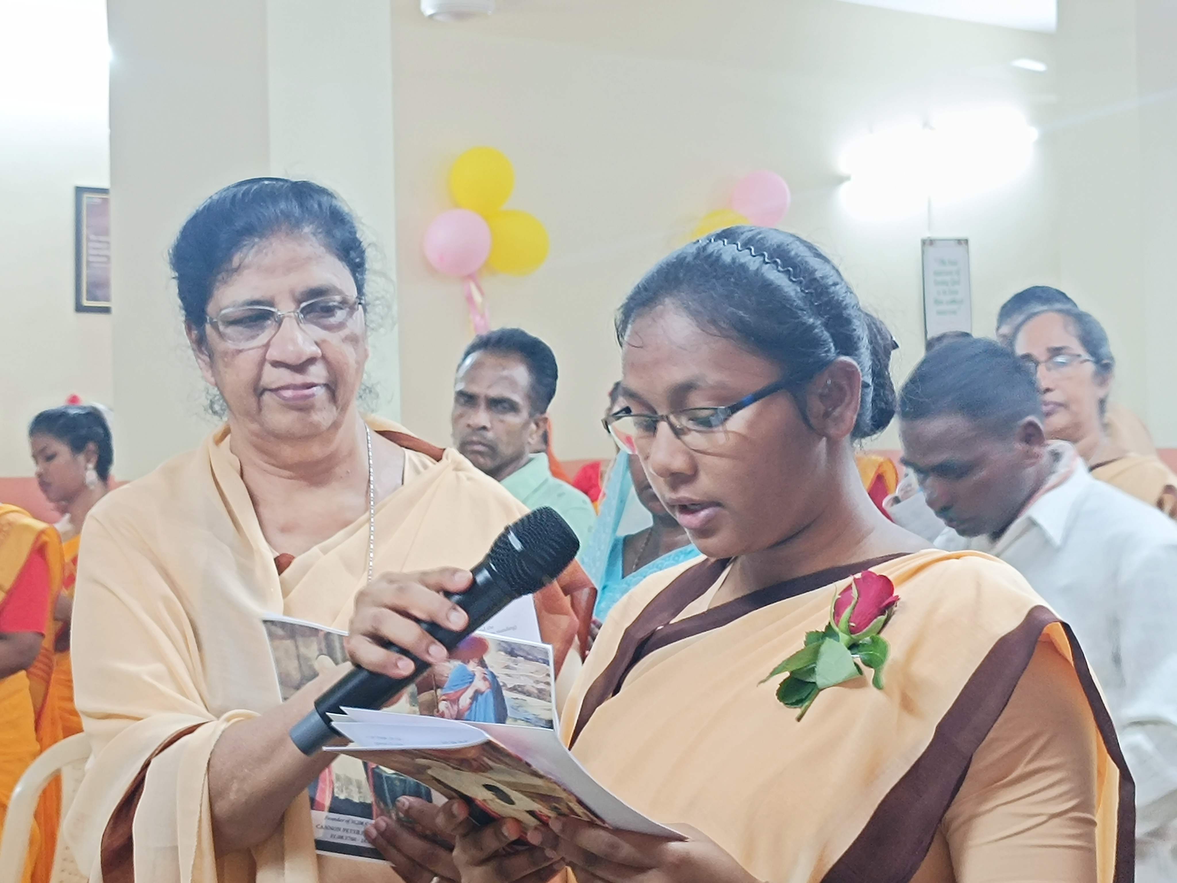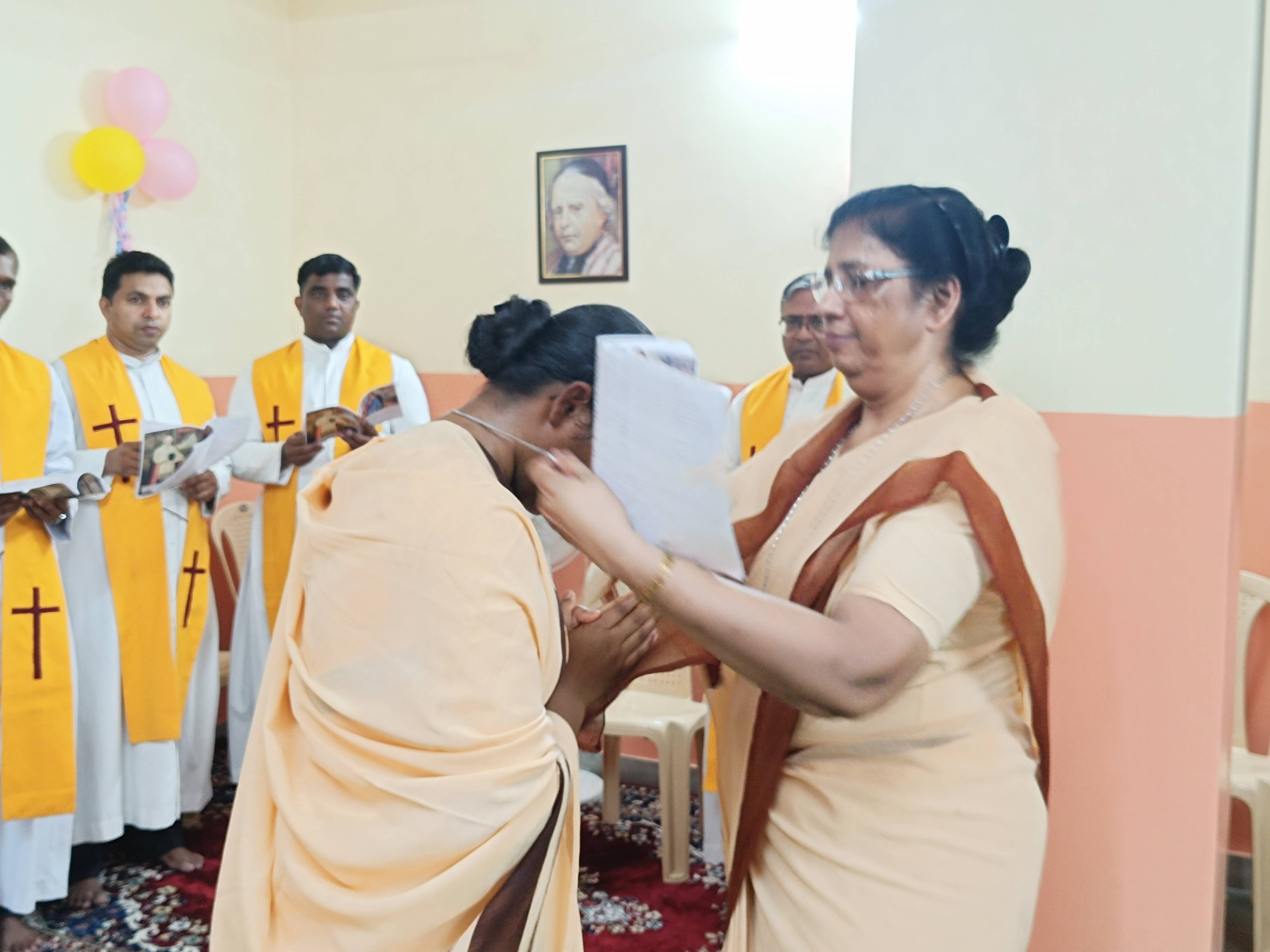 Sr. Lucy, the Provincial giving the Cross and chain to the newly professed