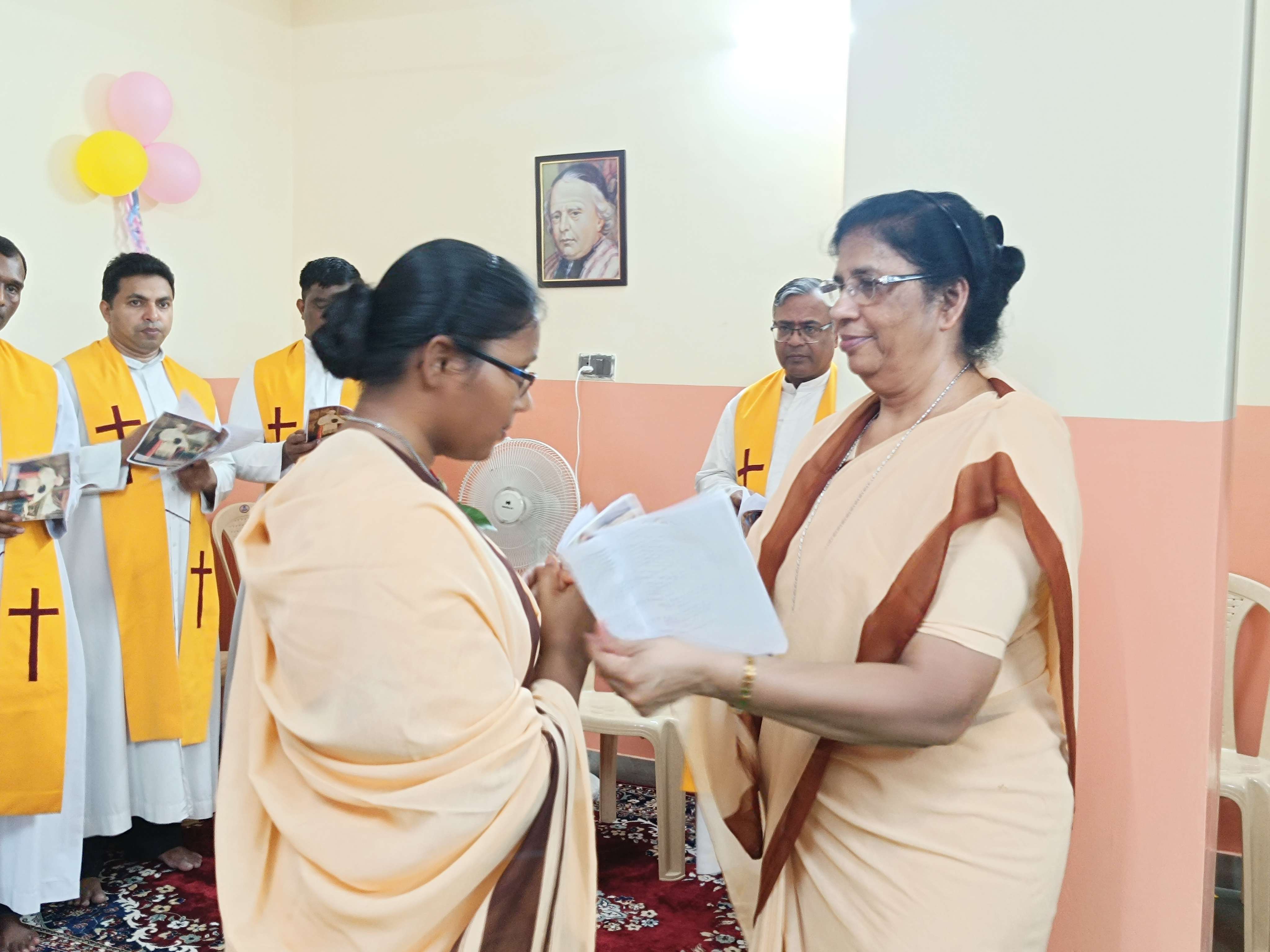 Sr. Christina handing over the Vow formula to the Provincial